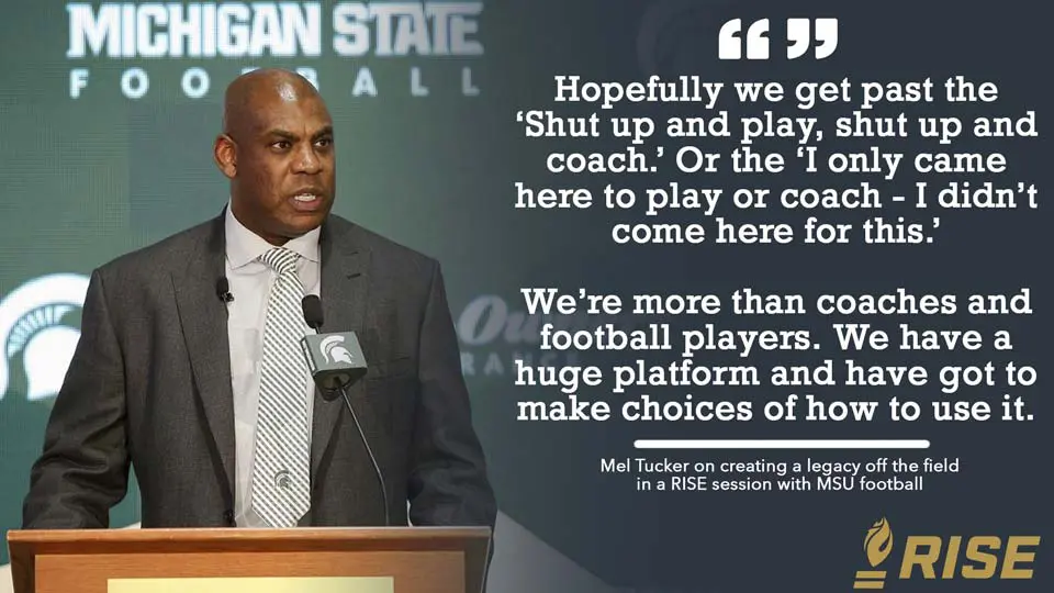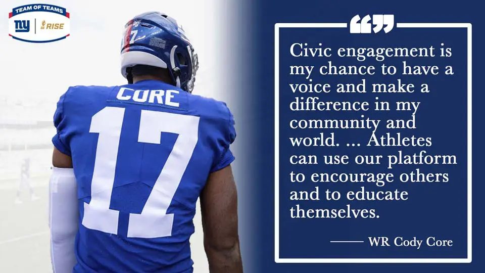 Provided with among our country's biggest platforms, athletes and coaches - like these players from the Giants and Chiefs and Michigan State football coach Mel Tucker - can be influential leaders in promoting positive social change. But remember, leaders don't need to be athletes or hold positions of power, and high school student Lorenzo Bogle explains how he's committed to being a leader now after a RISE Multi-Week Leadership Program.