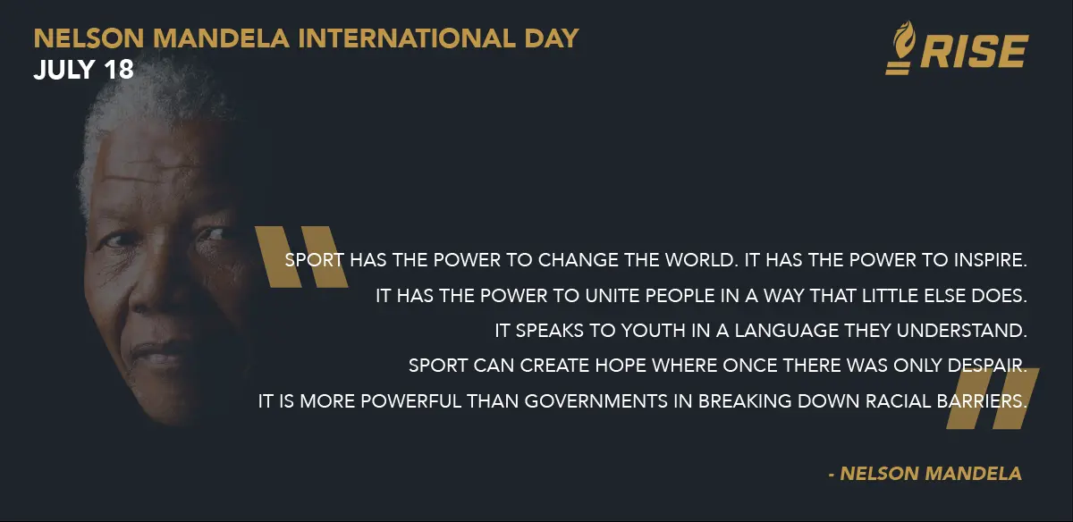 RISE stands for racial equity, social justice and unity. These are true American values, and ones that drive our work and give us purpose. We are also inspired daily by Mandela and the belief he had in the power of sport.
