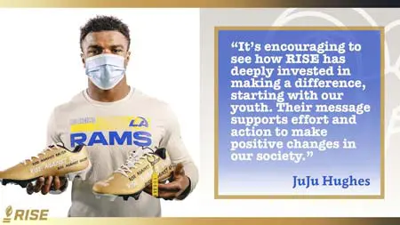 "We have to be willing to engage in difficult conversations and take intentional action to address systemic racism and inequity," said RISE CEO DIAHANN BILLINGS-BURFORD. "RISE with the Rams provides the safe space to have these conversations, and creates opportunities for a diverse group of students, players and officers to interact with each other and work towards the common goal of creating a more unified community. The Rams are deeply invested in achieving that goal and we're excited to have Tremayne, JuJu and Jacques represent RISE for My Cause, My Cleats to showcase the powerful impact of our work together."